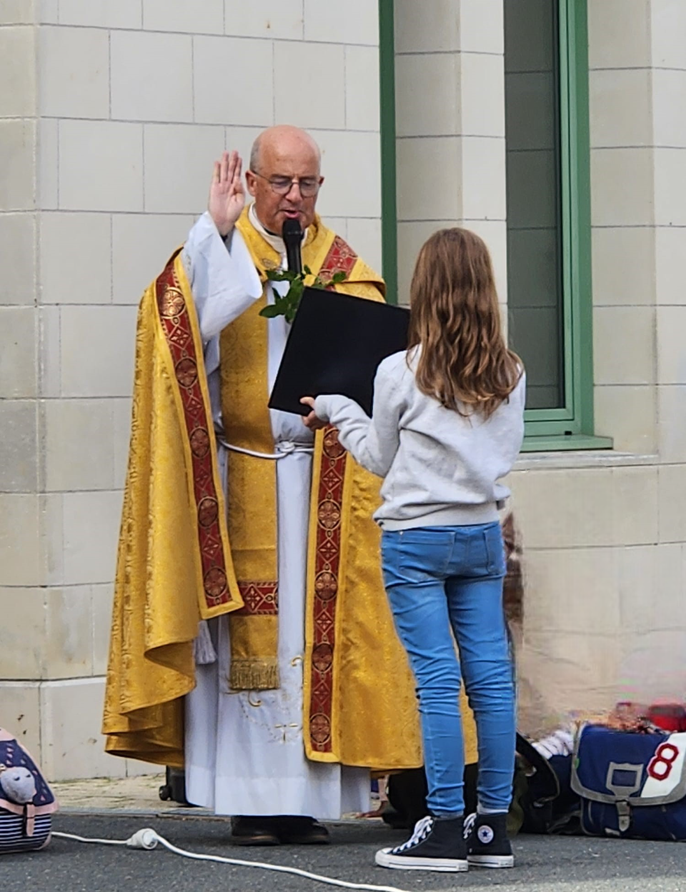 Le jeudi 2 octobre, le père d'Andigné est venu bénir les cartables des élèves et des enseignants.