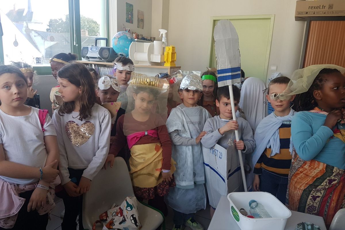 Notre thème d'année étant "protégeons la planète", nous avons fabriqué nos costumes avec du matériel recyclé !