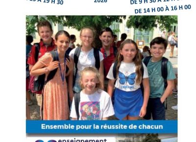 Secrétariat ouvert du lundi au vendredi, de 8h30 à 12h15 et de 14h00 à 17h30.